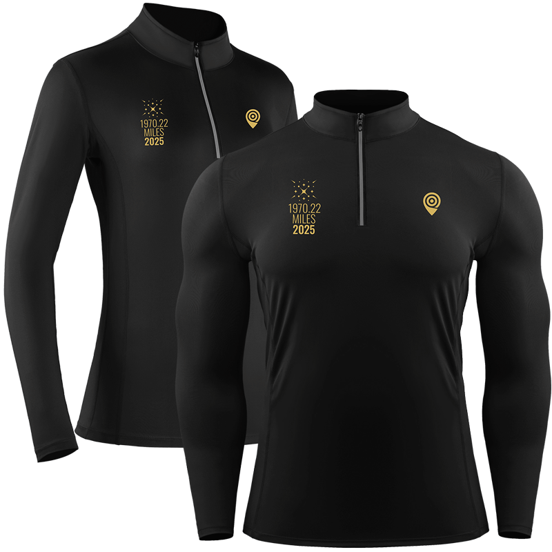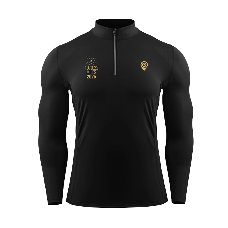 Our Race At Your Pace Loyalty Reward Training tops are dark blue with an exclusive gold print.